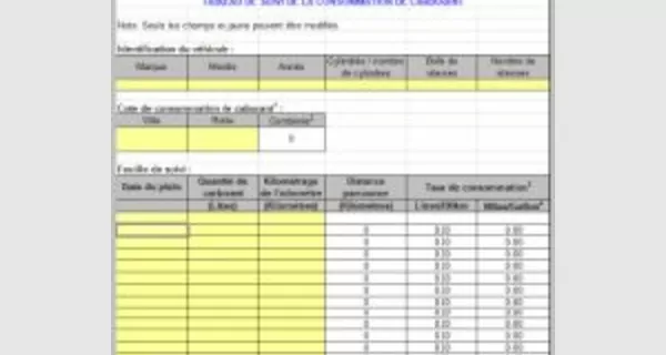 - Modèles prédéfinis : Vous pouvez télécharger des Template sur internet avec toutes les informations nécessaires pour gérer votre consommation de carburant. Ces tableaux téléchargés peuvent être modifiés à la suite d’une relecture par les services compétents de votre entreprise. Il est recommandé d’intégrer les champs suivants : La marque de votre voiture, le modèle, l’année d’acquisition, le nombre de vitesse, et une feuille de suivi comportant les éléments de kilométrage et de carburant à savoir la date du plein, la quantité de carburant et la distance parcourue. Ces indicateurs doivent impérativement figurés sur votre tableau Excel.