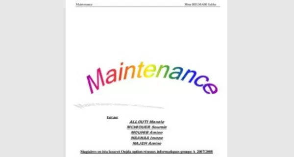 La maintenance vise à maintenir ou à rétablir un bien dans un état spécifié afin que celui-ci soit en mesure d'assurer un service déterminé.