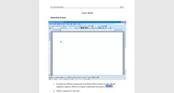 1. Connaître les différents composants de la fenêtre Word: les barres d'outils (afficher, supprimer, déplacer, afficher sur 2 lignes), signification des boutons …