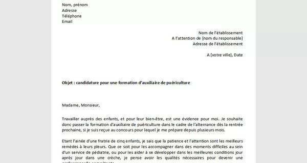 Lettre de motivation candidature pour une formation d’auxiliaire de puériculture