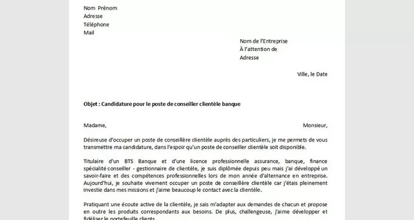 3- Modèle de lettre de motivation pour conseiller clientèle banque