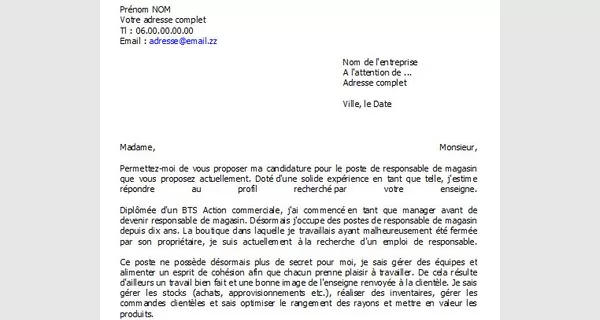 Rédiger une lettre de motivation responsable magasin – méthodes et exemple
