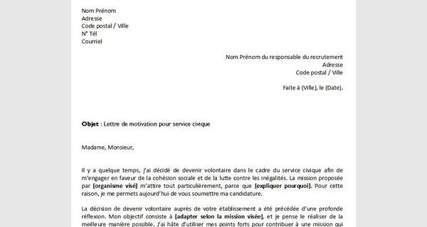 Lettre de motivation pour un service civique