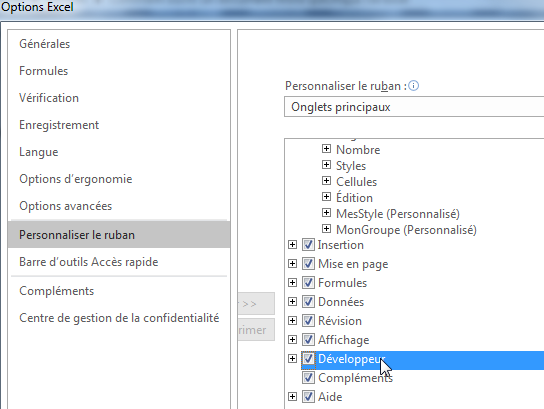 De retour à la fenêtre du programme Excel vous verrez que l'onglet « Développeur » apparaît sur la barre du ruban.