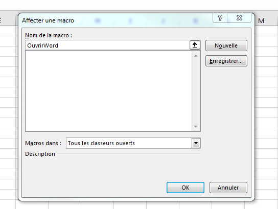 - Une fois vous cliquez sur la cellule, la fenêtre « Affecter une Macro» s'ouvre automatiquement.