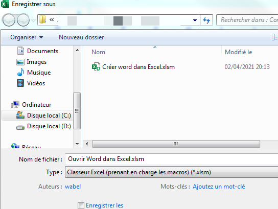 - Une nouvelle fenêtre Excel « Enregistrer sous» apparaît à l'écran :