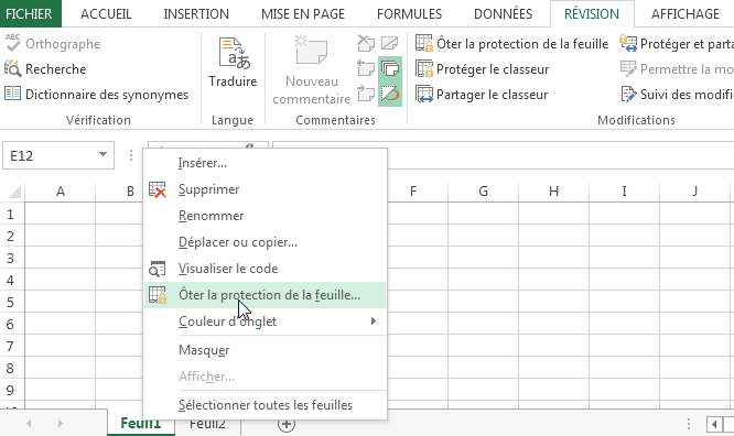 Si vous connaissez le mot de passe de la feuille protégée, la suppression de la protection est une question de secondes. Effectuez simplement l'une des opérations suivantes: