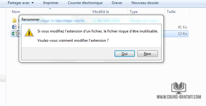 Étape 2: Renommez l'extension de nom de fichier ".xlsx" en ".zip" et cliquez sur "Oui" si vous voyez l'avertissement suivant.