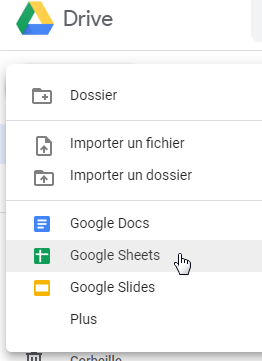 - Ouvrez Google Drive et connectez-vous à votre compte Gmail. Cliquez sur l'onglet Nouveau et sélectionnez Google Sheets.