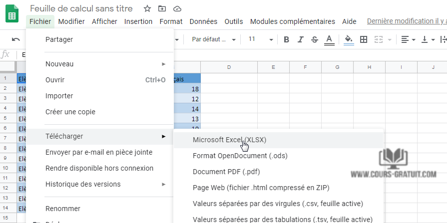 - Accédez à «Fichier» et cliquez sur «Télécharger», puis sélectionnez «Microsoft Excel (XLSX)».