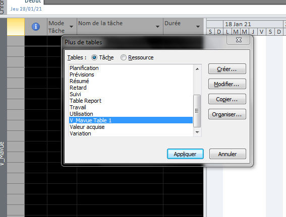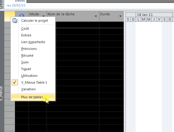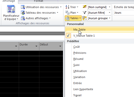 Tuto Ms Project : créer des tables et des vues personnalisées
