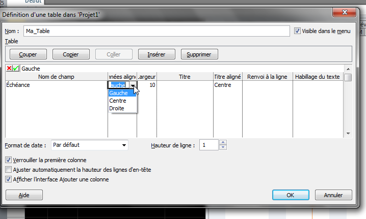 - Vous pouvez ensuite renseigner les autres options (alignement, titre, habillage) pour chaque champ si vous le souhaitiez :