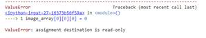 Si vous essayez de modifier une valeur par exemple image_array [0, 0, 0] = 0, cela va générer une erreur :