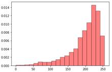 plt.hist(image_array.flatten(), bins=20, density=True , alpha=.5 , edgecolor='black', color='red' , label = 'Image originale')