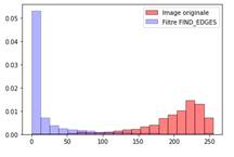 Le filtrage constitue un volet important en traitement d'images. Dans cette partie, nous allons générer des filtres à partir de la bibliothèque PIL, créer des images filtrées et comparer les histogrammes des deux images (originale et filtrée). Vous devez tout d’abord importer le module ImageFilter :