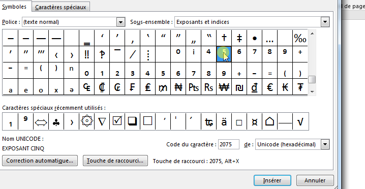 Méthode 1 : ajouter des exposants en utilisant la boite de dialogue « Caractères spéciaux »