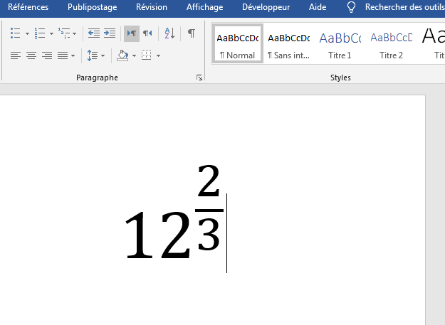 Comment faire pour écrire des exposants fractionnaires dans Word