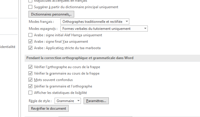 - A ce stade vous pouvez décocher des dictionnaires spécifiques que vous ne souhaitez pas utiliser dans le document.