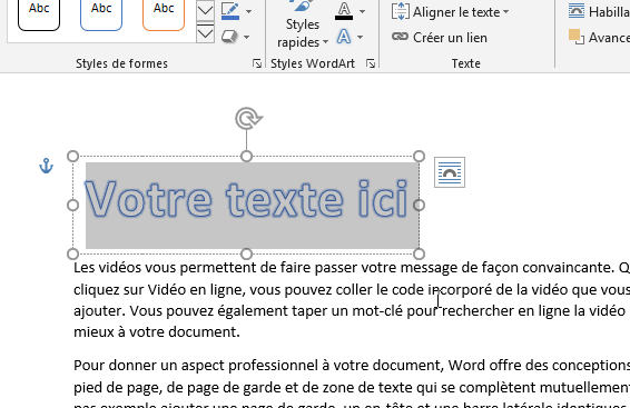 Aligner un objet Word Art