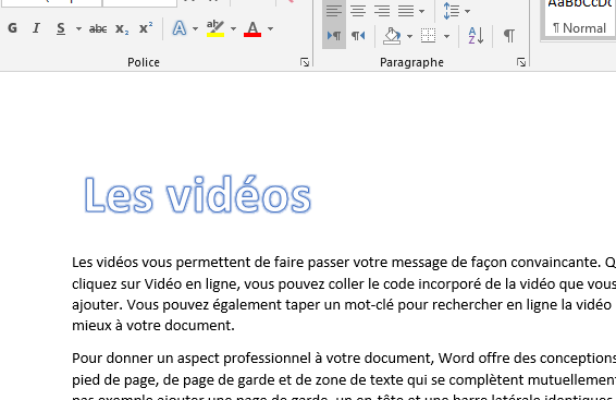 - Pour terminer et valider le texte que vous avez saisi dans le Word Art, cliquez à nouveau dans le document, en dehors du cadre de sélection du Word Art.
