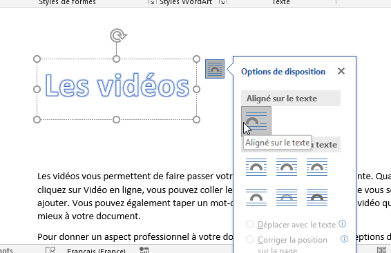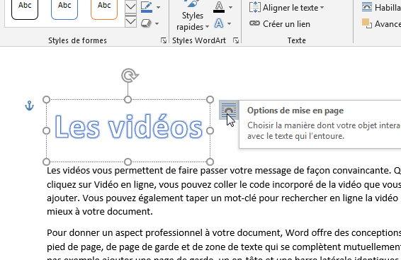 - Avec l'objet Word Art toujours sélectionné, cliquez sur la petite icone des options de mise en page.