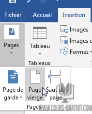 - Cliquez ensuite sur « Insertion », puis sur « Page vierge » pour insérer une nouvelle page.